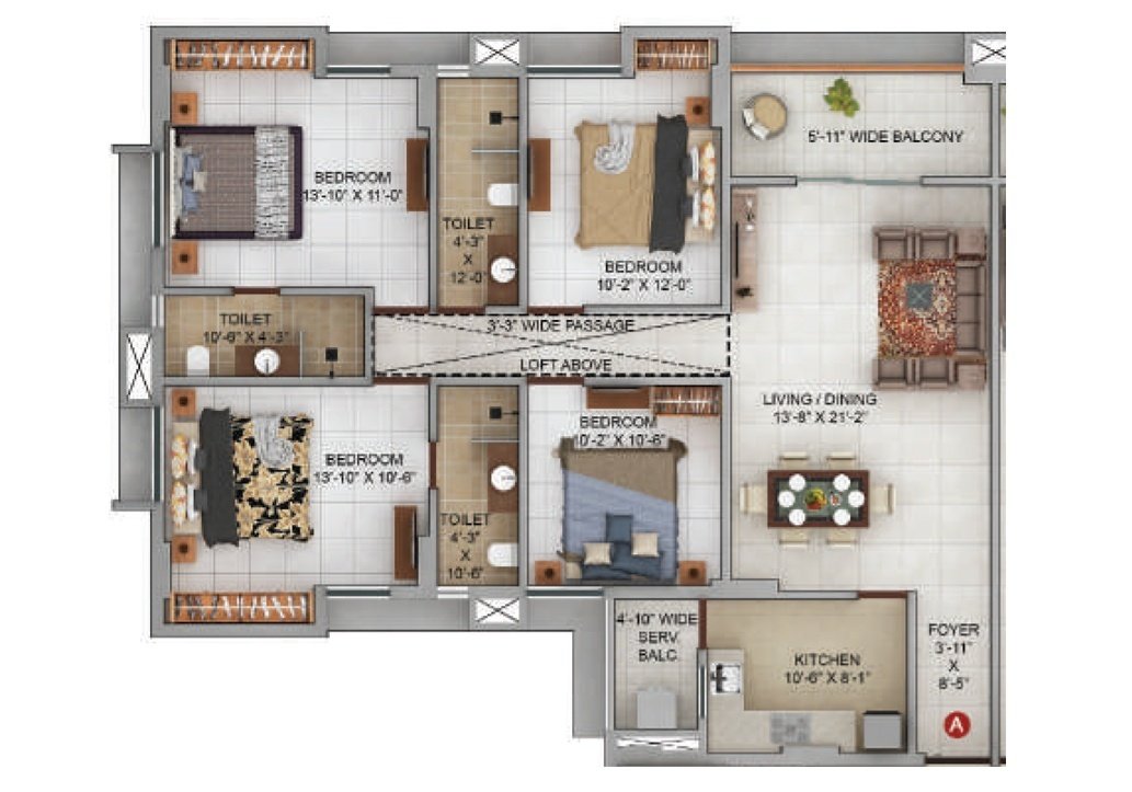 Specifically designed modern luxury apartments for a modern family with almost all apartments are 3 side open giving superior light and wind flow inside the rooms.